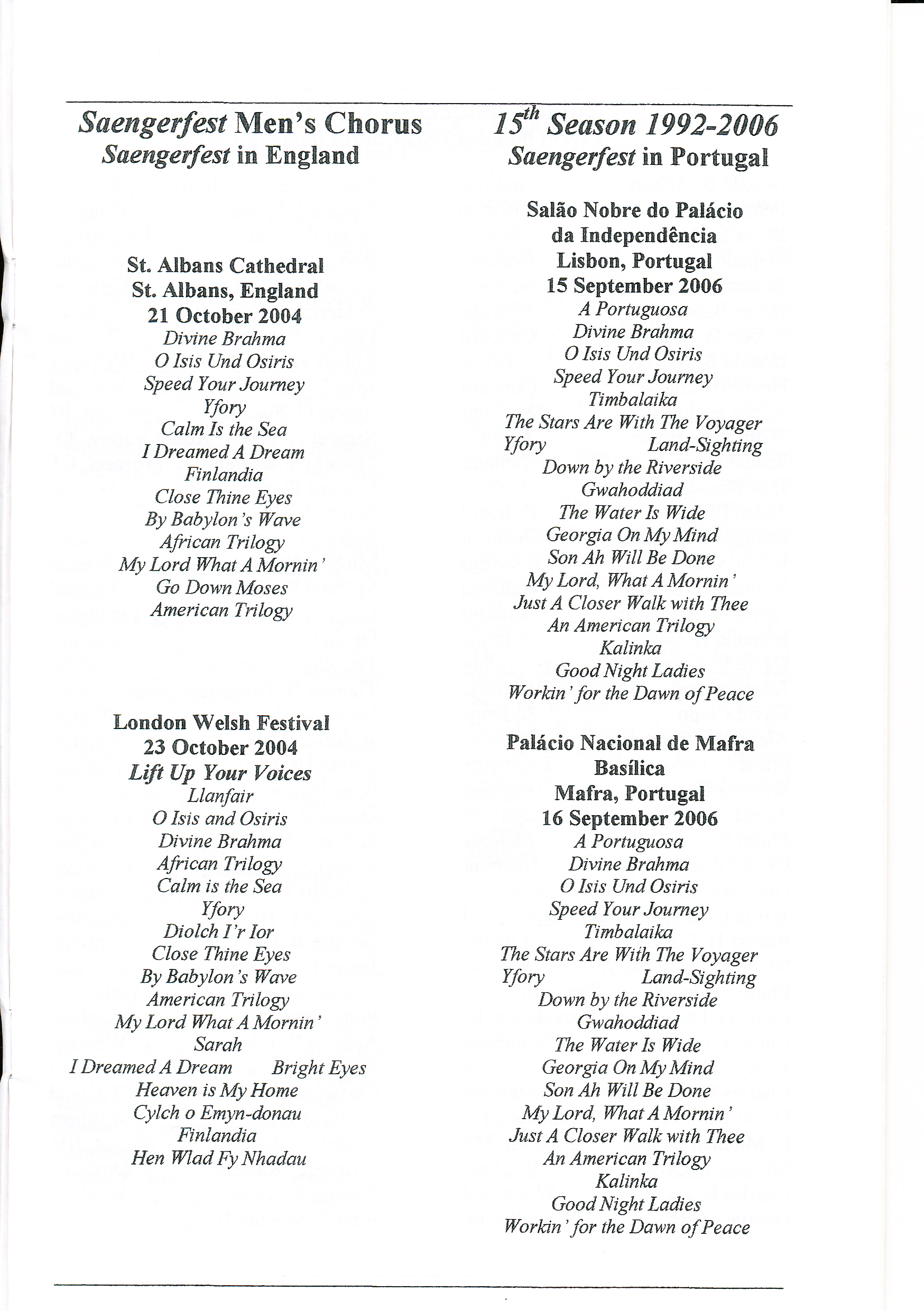 Previous Image Next Image 1992-2006 Saengerfest Chorus – list of songs for each year – page 2 1992-2006 Saengerfest Chorus – list of songs for each year – page 2