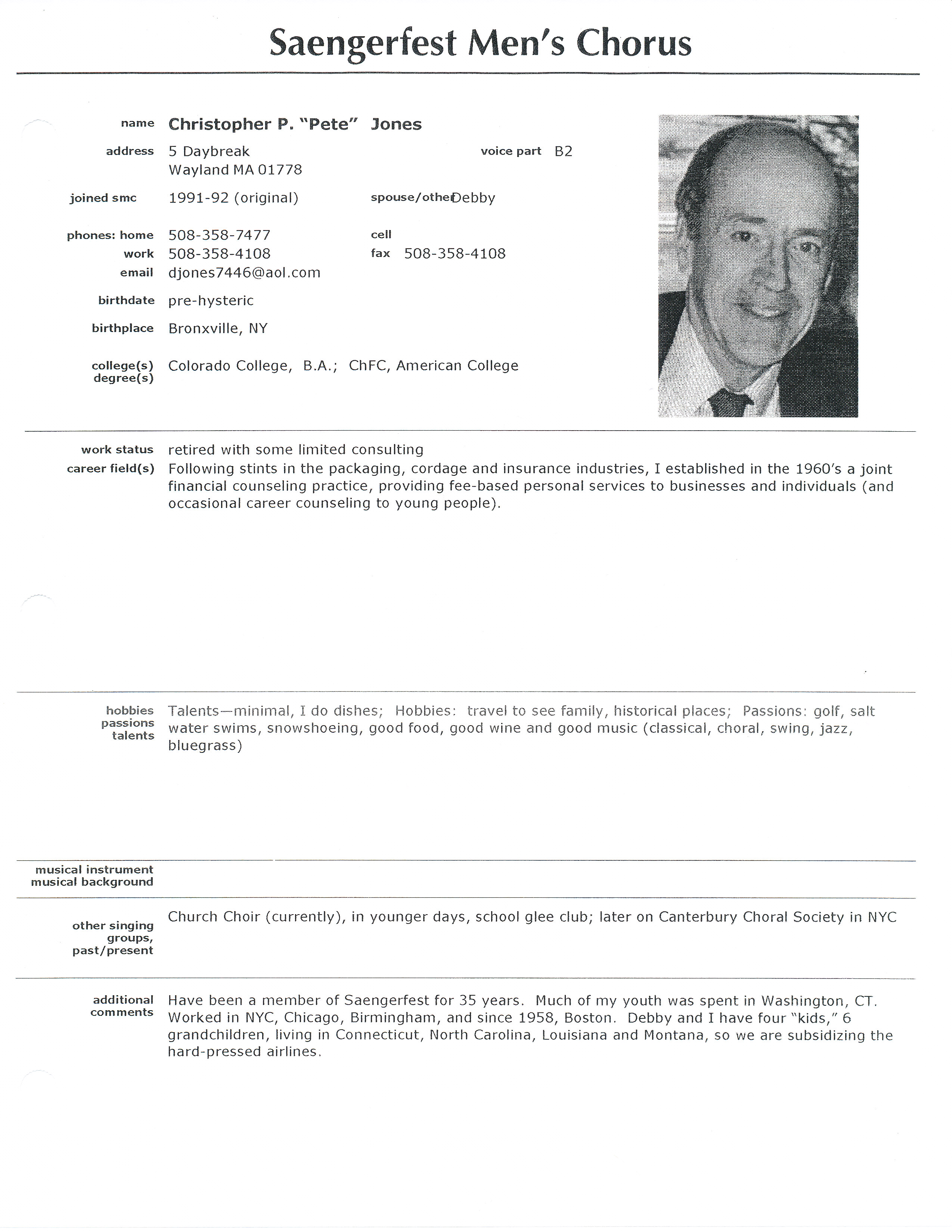 Pete Jones bio