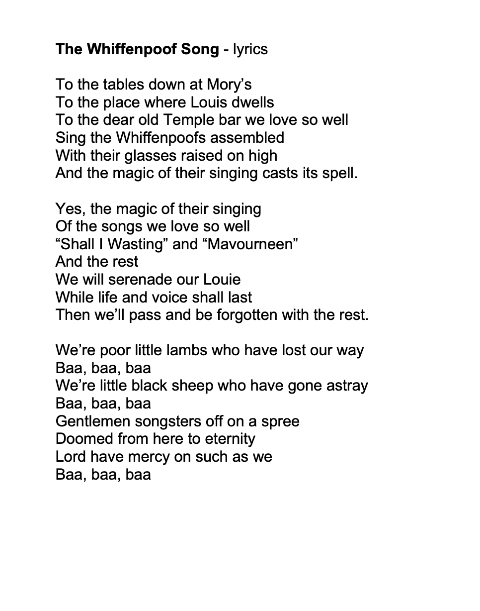 The Whiffenpoof Song – lyrics