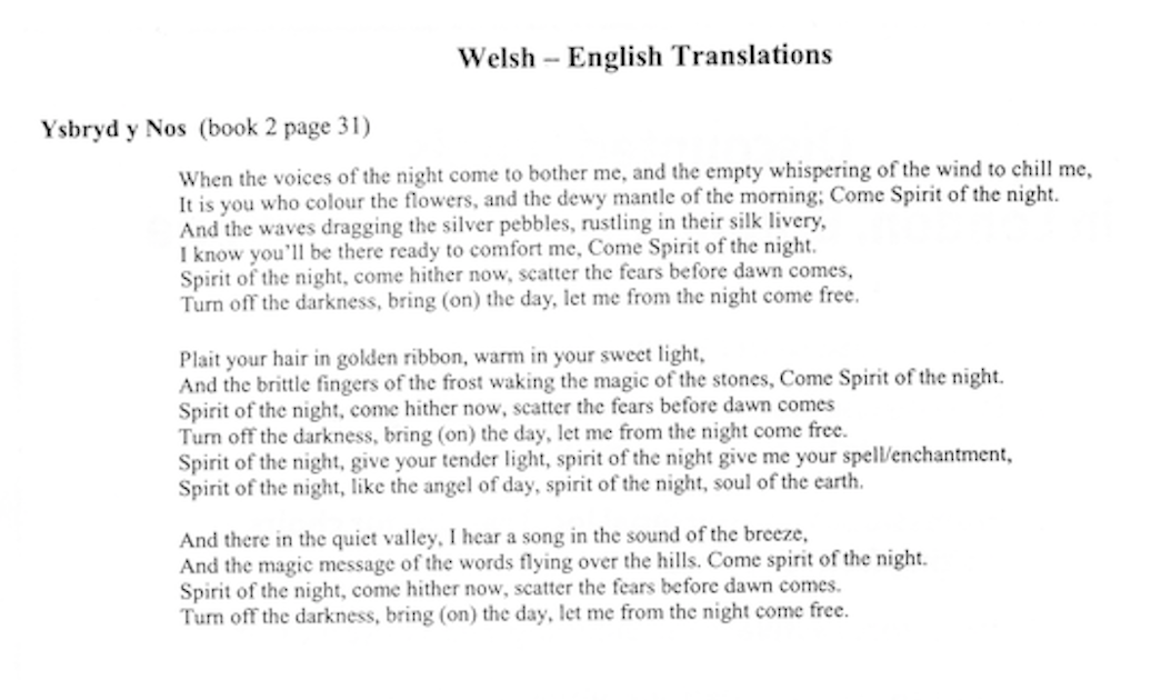 Previous Image Next Image YSBRYD Y NOS – English Translation of the Welsh1 YSBRYD Y NOS – English Translation of the Welsh